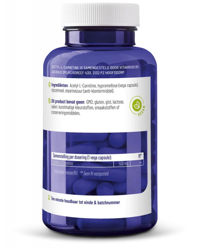 Daarnaast kunnen toereikende carnitine-niveaus met name voor vegetariërs en veganisten moeilijk te behalen zijn. Het semi-essentiële aminozuur vinden we namelijk vooral terug in dierlijke eiwitten; vlees en zuivel zijn de voornaamste bronnen. Mocht je dus een levensstijl met weinig tot geen dierlijke producten aanhangen dan kan suppletie met Acetyl-L-Carnitine 500 mg van meerwaarde zijn.