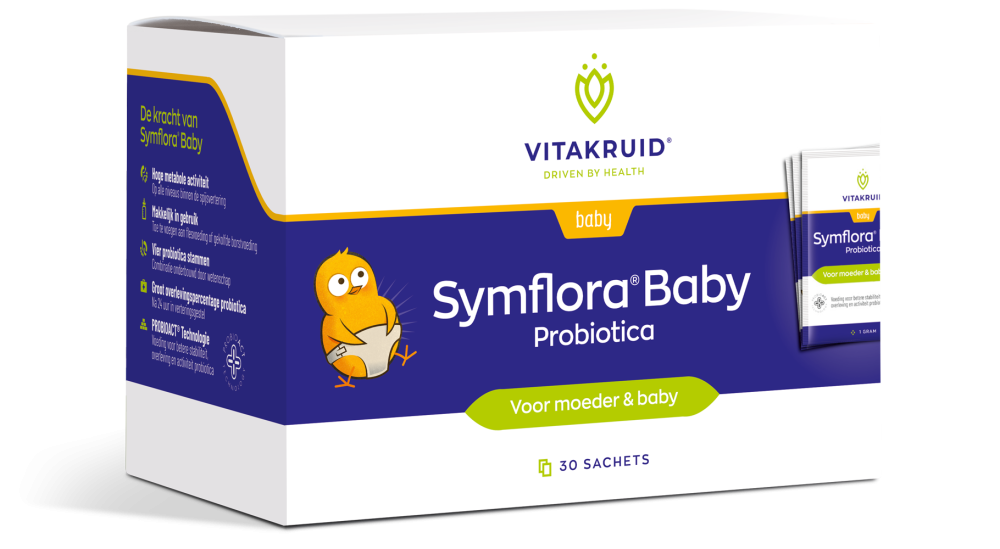 Symflora® Baby is niet alleen geschikt voor baby’s maar ook voor (aanstaande) moeders. Deze probiotica is te gebruiken vanaf week 32 van de zwangerschap en tijdens het geven van borstvoeding. De voeding en supplementen die je tijdens de zwangerschap en borstvoeding binnenkrijgt geef je immers door aan je baby.