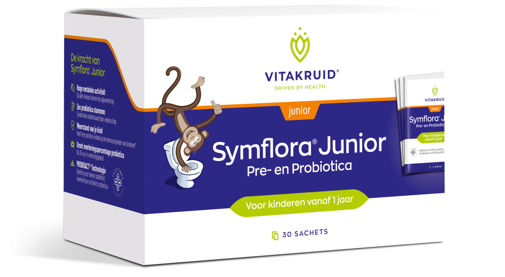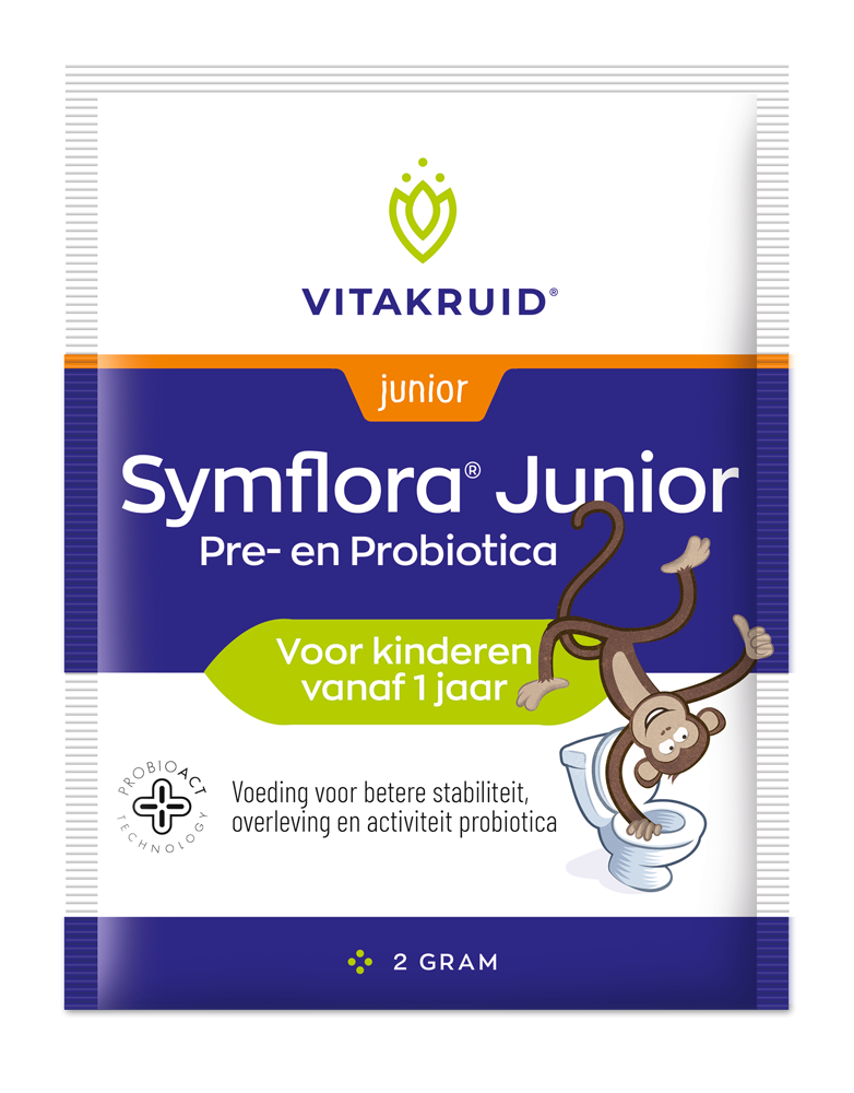 Bij elke periode in het leven past weer een andere probiotica die aansluit op de benodigdheden in die fase. Voor Symflora® Junior zijn probiotica stammen gekozen op basis van de behoeften bij kinderen vanaf 1 jaar. De junior formule kan gemakkelijk en veilig toegevoegd worden aan water.