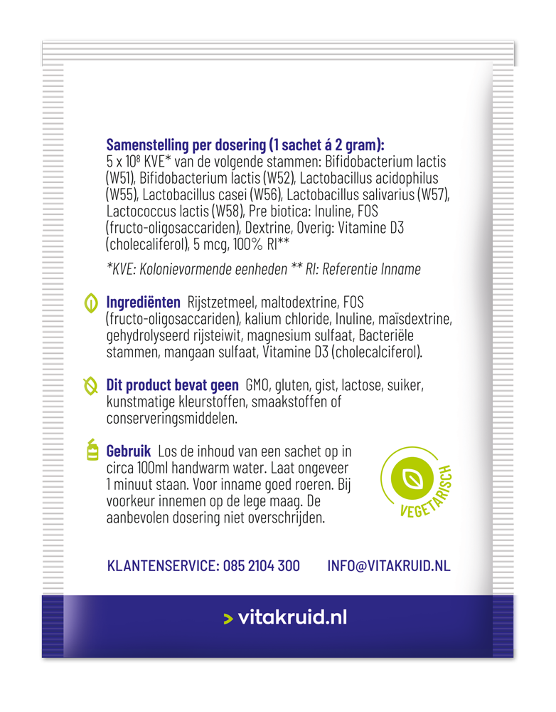 We hebben ervoor gekozen om Symflora® Junior te verpakken in sachets. Dit heeft verschillende voordelen ten opzichte van andere verpakkingsmethoden. Zo blijft het product in een sachet optimaal beschermd tegen licht, lucht en vocht.